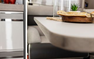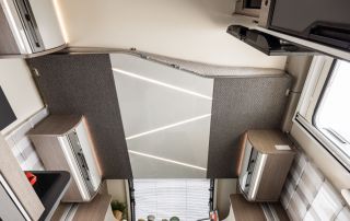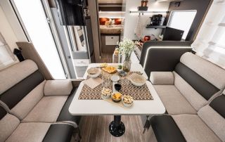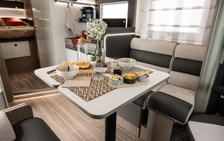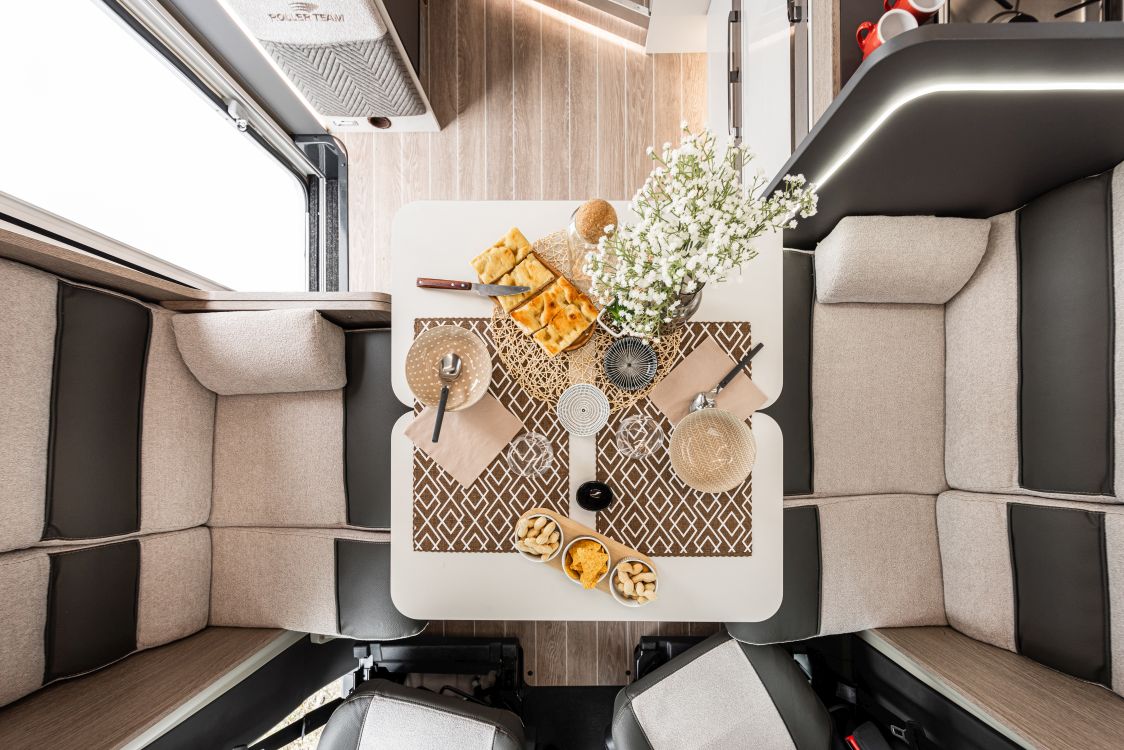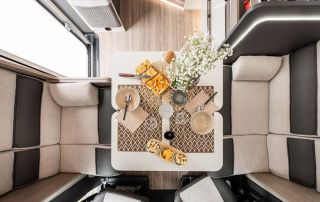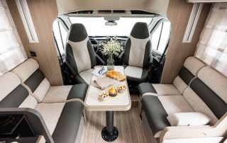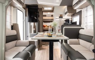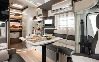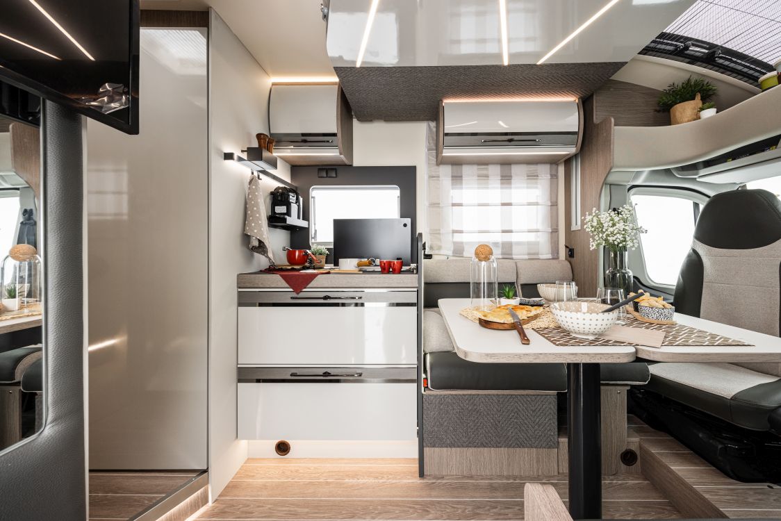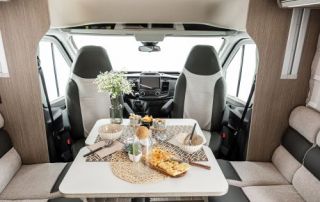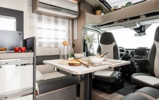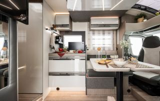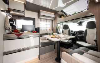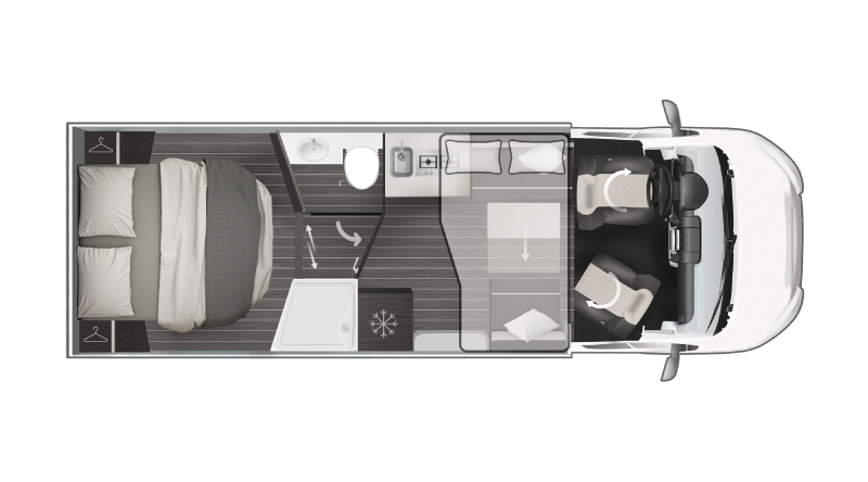 Herd & Spüle I Kühlschrank 12 V, 220 V, Gas I Klimaanlage im Fahrerhaus I Heizung mit Umluft I Toilette & Dusche I Warmwasserboiler I Frisch- & Abwassertank I Zusatzbatterie mit Ladegerät I Thermomatten für Fahrerhaus I Wasserschlauch I Anschlusskabel I Fahrradträger*